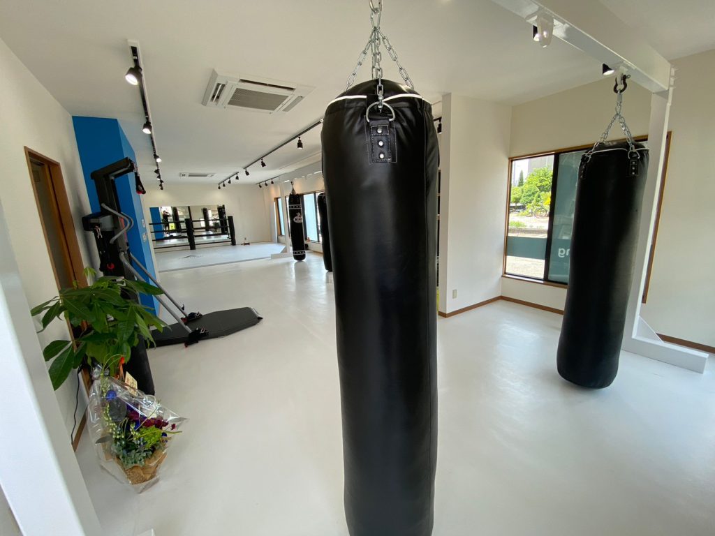 白を基調とした清潔感のある落ち着いた空間で楽しく汗をかきながらキックボクシングを行うことが出来ます!