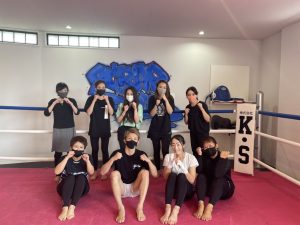 レディースクラスでは、楽しくみんなでキックエクササイズ