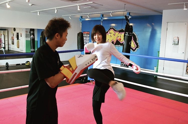 芸能人がダイエットや健康、スタイルキープのためにキックボクシングをする。